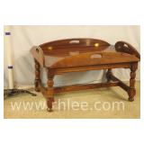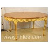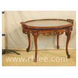Carved French style oval coffee table with removable glass tray top; 68-627 - burl walnut top - 31x21x19