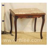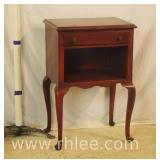 Mahogany Queen Anne style single drawer/open front night stand; 68-625 - (burn mark on top; loose veneer on right) - 19.5x14x29