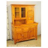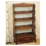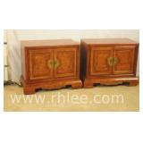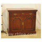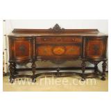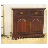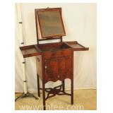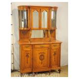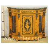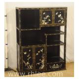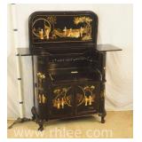 Oriental style server/bar with lift top/backsplash; 68-675 - drop front serving area with mirror shelf - corner and side doors - (various cracks; missing pieces of inlay, finish as-is, etc.) - 36x18x39.5