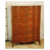 French style serpentine front 6 drawer chest; 68-678 - raised panel sides - 38x22x52