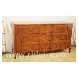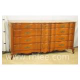 Cherry French style serpentine front triple dresser; 68-678 - 12 drawers - raised panel sides - 68x22x35