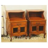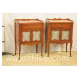 Pair of French style night stands with galleries; 68-678 - 1 drawer over 2 wire doors - 21x15x29.5