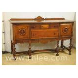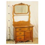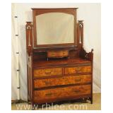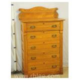 Oak 5 drawer chest with carved backsplash; 37-507 - panel sides - 36x18x57