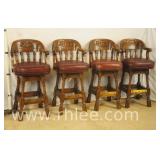 Set of 4 oak curved back bar chairs; 68-686 - turned spindles - swivel seats - carved backs - 21x20.5x41.5; 29" seat height