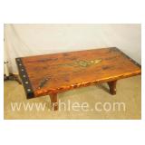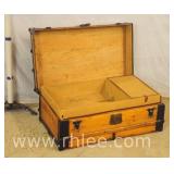 Early wooden trunk with interior tray; 37-496 - (tray is cracked) - 32x19x13