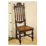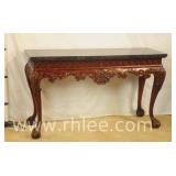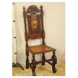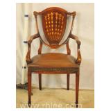 Inlaid carved Chippendale style desk chair; 74-3334 - ball in claw feet - (finish as-is; seat cushion is loose) - 27x24x41.5
