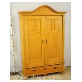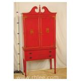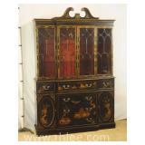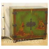 Green Oriental decorated 2 door cabinet; 737-1246 - adjustable shelves (needs more shelf pegs) - (finish as-is; chips in veneer) - 36x18.5x34