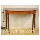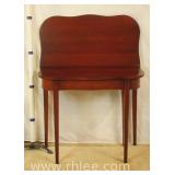 Inlaid mahogany flip top table with serpentine front and 2 leaves; 68-690 - off-white painted trim (as-is) - 38x20.5x30 closed; 13" leaves