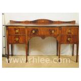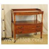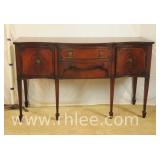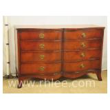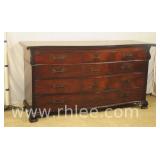 Kindel mahogany 4 drawer serpentine front low chest; 37-516 - (missing 1 pull; finish as-is) - 44x22x37.5