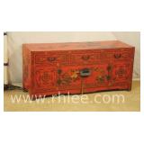 Oriental decorated 6 drawer double dresser; 737-1199 - (veneer on sides as-is; finish as-is) - 58x19x32