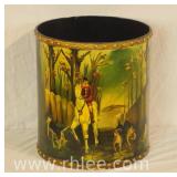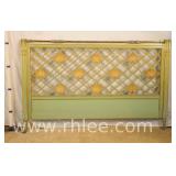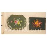 Two green hand painted metal trays; 781-123 - floral painting - 1 has reticulated edge (bent; scratches) - 25x20 and 22x16.5