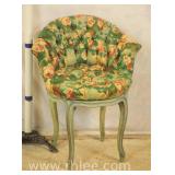 French style vanity chair with turned legs; 55-2614 - (finish and fabric as-is) - 19x21x33.5