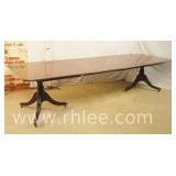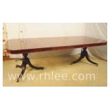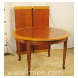 Inlaid mahogany drop leaf dining table; 55-2378 - tapered legs with brass toe caps and casters - (finish as-is; chips in veneer) - 42x25.5x30