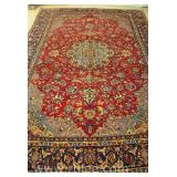 Hand knotted rug; 55-2629 - (worn fringe; stains) - 5.2x8.3
