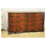 American of Martinsville banded mahogany triple dresser; 68-613 - serpentine front - (finish and veneer as-is) - 58x22x34.5