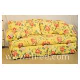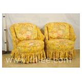 Pair of yellow floral curved back chairs; 55-2754 - (fabric as-is) - 28x28x29.5