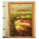 Group of 6 unframed landscape paintings on canvas; 68-620