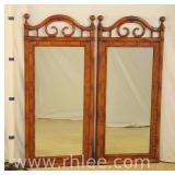 Pine double oval mirror with turned columns; 55-2714 - 55.5x46