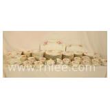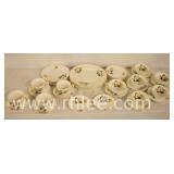 Harleigh bone china set; 68-572 - 5 plates, 4 salad, 6 bread, 6 double handle cups w/ saucers, 4 cups, 6 saucers