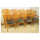 Set of 8 spindle back arm chairs with stretcher base; 737-1256 - turned legs, stretchers and spindles - 25.5x26x44.5