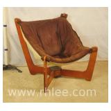 Unusual hammock style lounge chair with wood frame; 737-1245 - 29x30x28.5