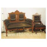 Eastlake style walnut settee and platform rocker; 737-1234,1235 - (as-is) - 54x23x41.5 settee; 22x25.5x36.5 rocker