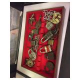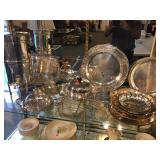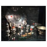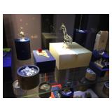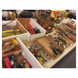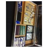 Packed full with Estate Smalls to include Sterling Silver Flatware and Holloware, Coins include Proof Sets & Individually Sold, 50 more pieces beautiful Svarowski Crystal all MIB, Costume, Sterling & Gold Jewelry, China, Air Force & other Uniforms, 20 Shelves full Xmas & other Collectibles, over 40+ Hummel Figurines, Silver Plate, Antique Green Seltzer Bottles, Crocks, Juggler Bats, Lenox Sterling Creme Brule Bowls, Electric Guitar, Arrowheads and Pre-historic Shark's Teeth, Coin Silver, Old Locks, more Theatre T-Shirts, Clocks, Jewelry making Items, Stones, etc., and 6 tables full of Tools and more!,