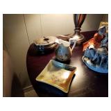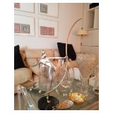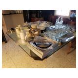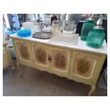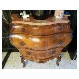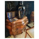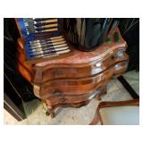 DESIMONE POTTERY ITALIAN MARBLE TOP BOMBE COMMODES WEDGWOOD CHINA BONE FLATWARE SETS CRYSTAL GLASSWARE MESA MID CENTURY ITEMS BAKER FURNITURE CHAIRS HEAVY GLASS TOP PEDESTAL TABLE
