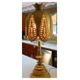 LIGHTING: Absolutely striking central hall crystal chandelier, 2 magnificent crystal luminaries on pedestals, 2 large gold and filigree tulip lamps, 2 small gold table lamps, floor lamps, neon beer sign, candleholders