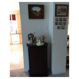 Beautiful home with nice quality furnishings: Pennsylvania House sofa, Ethan Allen sofa, wing back chair, ball foot chair, lamp tables, King bed set, dresser, Tell City Furniture china cabinet, drop leaf tea cart, French Provenical bed, night table, dresser & mirror, chest, Lane cedar chest, 2nd cedar chest, mid century wall unit, wood rocking chair, small curio cabinet, corner curio, Lingerie chest, floor globe, hanging file unit, lateral file cabinet Appliances: washer, dryer, garage refrigerator, Electronics, new in box video cassette recorder Cut crystal, stemware, wine glasses, Ruby Cape Cod dishes, cup saucer collection, Lenox, Fitz & Floyd, Tiffin, Heisey Rose candlesticks, Blue & White pottery, white ironstone, Christmas dishes, Fall dishes, covered turens and cassrole dishes, cookware, Tupperware, small kitchen appliances, 2 vacuums, lamps, decor pillows, Linens, Fitz Floyd Christmas, Norman Rockwall framed plates, silver, luggage Ladies clothes, purses, shoes, coats, hats, beautiful costume jewelry collecton Yard: spreader, coolers, hand tools, ladders, chairs, bird bath, storage tubs, metal shelfs |