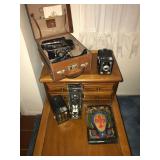 Jewelry, collectibles, Vintage Cameras, Belleek, Spode, Beswick Ware, many tea cups & unique plates, fine china, spoon collection, shoe making, office, nice furniture, Lane cedar chest, w&d, tons more.