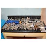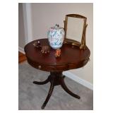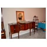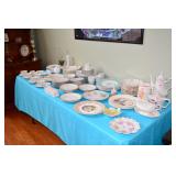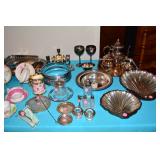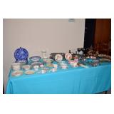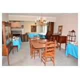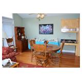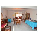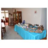 Dining Room: Antique Dining Room Table and Set of Chairs, Mahogany Sideboard, Tier Shelf Unit, Antique China Cabinet, China, Glass, Silverplate, Smalls, Collectibles, Art, and More.