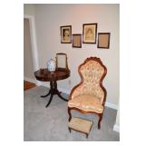 Living Room: Loveseat, Antique Rosewood Rocking Chair, Antique Secretary, Wall Unit/Media Center, Electronics, Antique Drop Leaf Table, Lamps, Art, Miniature Dolls, Original Oil Paintings, Glassware, Crystal, Smalls, and More.