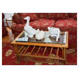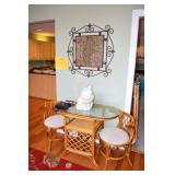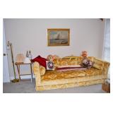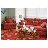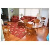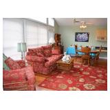 Family Room: Sofa with Matching Oversized Chair, Coffee Table, Rattan Table with Matching Chairs, Oak Kitchen Table and 4 Chairs, Vintage Hutch, Floor Lamps, Art, Rug, Smalls, and More.