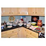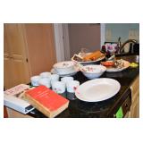 Kitchen: Dishes, Bakeware, Toaster, Flatware, Serving Items, Pyrex, Mixing Bowls, Utensils, and More.