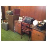 Antique collectibles, fine furnishings galore including upholstered sofa and chairs, hutches, coffee tables, mirrors, Ethan Allen night stands, end tables, bric-a-brac, vintage electronics, oval dining table and 6 chairs, Hitchcock occasional table and bench, clocks, flat screen TV, books, leather chair, vintage movie projector, framed artwork, lift chair, loads of glassware and china, kitchenette, antique wicker pieces, small appliances, kitchenware, cookware, washer & dryer, queen beds, blanket chest, triple dressers, tall chests, loads of linens, women’s clothing and accessories, shoes, furs, rocker, vintage office equipment, desk, ladies desk, garage items and more.