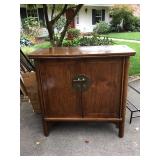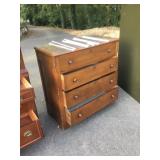 This online auction features several chest of drawers, a sideboard and small cupboard. MANY PIECES POTTERY. CHINA/IRONSTONE: Adams "Lancaster" ironstone; Franciscan "Arcadia Maroon" tea set; Arabia "Fennica", Finland china. ANTIQUE BRASS COFFEE TEA URN. Metal feed trough and much more!