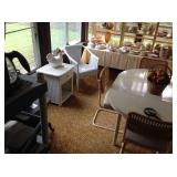 NOTE: This is the 3rd day for this location. Pictures and description may included items that have been sold. The items that are left are offered at huge discounts. Everything must go! Antique collectibles, fine furnishings galore including upholstered sofa and chairs, hutches, coffee tables, mirrors, Ethan Allen night stands, end tables, bric-a-brac, vintage electronics, oval dining table and 6 chairs, Hitchcock occasional table and bench, clocks, flat screen TV, books, leather chair, vintage movie projector, framed artwork, lift chair, loads of glassware and china, kitchenette, antique wicker pieces, small appliances, kitchenware, cookware, washer & dryer, queen beds, blanket chest, triple dressers, tall chests, loads of linens, women’s clothing and accessories, shoes, furs, rocker, vintage office equipment, desk, ladies desk, garage items and more.