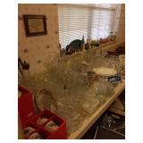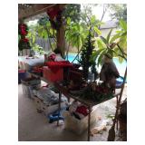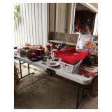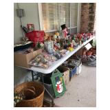 Packed 2 story house with loads of treasures Unique mannequin Christmas tree Doll Collection: Mdme Alexander, Barbie, Anna Lee, collectible toys, doll house & furniture Hummels, Mahjong set Mackie sound board, bass & 2 speakers Furniture: sofa, 2 love seats, chairs, large ottoman, dining table & chairs, maple table & chairs, utility cart, bar server, console tables, bedroom set, studio bed, bow cabinet, 3 curio cabinets, coffee & lamp tables, dresser & mirror, chest drawers, wicker settee & chair Victorian dresser, set 3 stack tables, hump back trunk, 2 barrister cases, Samsung flat screen tv, writing desk, quilt racks, small recliner Copper ware, Sterling Silver, lacquer tea set Houston Livestock show trophies, belt buckles and other items Crystal: Fostoria, Waterford China: Royal Doulton, Wedgwood, Noritake, Pottery Barn, Pottery & crocks, pink depression glass, King Crown Cranberry glass Linens: vintage quilts & linens, large table cloths, towels, sheets, pillows, Electronics, DVD & CD, Books, cookbooks, old newspapers, cameras & vintage camera equipment, Singer tiny serger, Bell tiny sewing machine, Fabrics, sewing notions, craft supplies, lamps, wall mirrors, small kitchen appliances, flatware, cookware,candy molds, punch bowl, record albums & 45s , baskets, framed art, posters, train set Ladies clothes, purses, hats, shoes, gloves some vintage Costume jewelry Christmas: dept 56, Hummel manager set, Hallmark ornaments, wreaths, linens Appliances: washer & dryer, Kenmore side by side refrigerator Patio: table chairs, tables, Palmera potted plants 2 to' 6', other potted plants Garage: power tools, ladders, yard tools, garden items, pots, lawn mower,