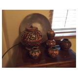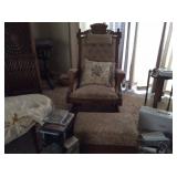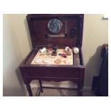 Great golden home filled with antiques and vintage furniture, vintage dishware, décor, collectables and jewelry. Inventory List Jewelry Freezer Dining table with six chairs Hutch Nippon china 2 sets of Noritake china Vintage plates Vintage curved glass cabinet Floor lamp Bar stools Silver plate and gold tone flatware sets Sterling Vintage doll Décor 2 wing backed chairs Pillar Rustic dresser with 2 matching nightstands King bed frame King mattress 1 year old Curio cabinets Vintage chair with matching ottoman Bamboo table and chairs Accent vintage tables Vintage coffee table Plants Vintage dishware Hammered aluminum Vintage cedar chest 2 nightstands or side tables Assortment of lamps and shades Rustic horseshoe table Art and Decor Vintage linens Antique makeup vanity Kenmore sewing machine in cabinet Vintage singer sewing machine in cabinet Assortment of books Carpet cleaner Wall clocks Vintage cigarette holder Gun holster Sculpture Sewing boxes Oreck Ladies golf clubs Golf supplies Vintage oil lamps Insulators Vintage teapot Pool floating ship 10” bench saw Record player Beanbag toss game Frames Franciscan china Unique lamps Vintage bottle