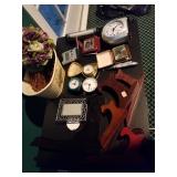Items located in Garden City, NY. Items include Japanese Imari animal decorated charger; box of French art Port Grimaud by SERGE MENDJISKY; 11 pcs. Tiffany; Royal Tara fine bone china; 2 ruby & Crystal electrified oil lamps turned into candle holders; antique rocking chair; 5 Chippendale dining chairs; German windup antique chime clock; 2 brass lamps with silk shades; 3 small Hummel figurines; full size bed with cane headboard; silver plate trays, creamer & sugar; outdoor concrete statues and planters; area rug and more. Preview: Preview available online 24 hours. |
