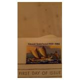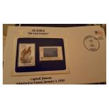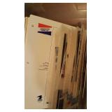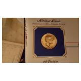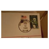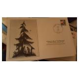 Stamps: Presidential medal coin and stamp Washington through Reagan, Hummel Christmas, state metal stamp and production stamp, various metal stamp and production stamp, airmail envelopes, 4 cent stamp embossed envelopes, stamp collection books, loose stamps (cancelled and books of unused)