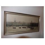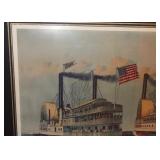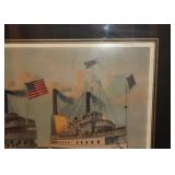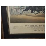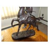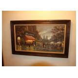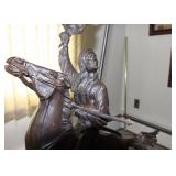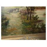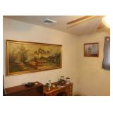Contents of a Poughkeepsie, NY home. Items include a Frederic Remington bronze "buffalo signal" table lamp; two lithographs incl Currier and Ives framed and matted litho under glass of J. Cameron's "The Great Double Team Trot" 34.25"x29", the other is framed and matted Frederick Bromley litho titled "Sir Richard Sutton and the Quorn Hounds"; a Hall tree bench; a Howard Miller grandfather clock; three brass eagle figurines; three framed oil on canvas still lives of floral center pieces, signatures incl "A. Norris", one appearing to be "Tom JZ", and one appearing to be "A. Silvez"; Five display cannons incl three metal, one metal with painted wheels, and one wooden having carvings throughout; collectibles; furniture; Currier and Ives framed and matted print under glass of "C.R. Parsons" artwork titled "The Grandest Palace Drawing Room Steamers In The World Drew And St. John, Of The People's Evening Line Between New York & Albany, Passing On The Hudson"; artwork; MTD 28" snow blower model E660G having 10HP; GE "adorable" front load washing machine; Sentry 1330 safe; W.O. Dunning, D. D. Safe; World Monetary Exchange Reserve safe; exercise equipment; and Much More! Preview: Preview available online 24 hours. |