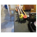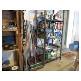 Lawn sprinklers, fertilizer, pitchforks, shovels and other lawn maintenance articles.