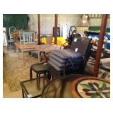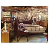 Liquidation sale remaining contents of large contemporary home inventory includes: West Marine 2008 Inflatable boat (11’6” x 5’8”) with two Mercury Outboards 8 and 3.3 hp four stroke motors, paddle boat, highboy dresser, Amoire, TV cabinet, Rattan dresser and bookcase, 42” round pedestal table with 5 chairs, hand carved wood decoratives, leather sofa, Bodart side board, linens, kitchenware/cookware, 4 piece living room suite, several coffee tables, bistro table with two chairs, bookcases, ladies desk, bric-a-brac, queen canopy bed, triple dresser, Radio Flyer wagon, bench, painted chest, Thomasville hutch, patio furniture, pet carriers, fine art, prints, movie posters, framed artwork and much, much more.