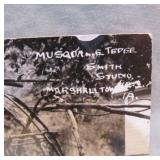 vintage horse regalia with bells; James Walker & son photos; Ojbwa RPPCs; Indian Chief advertising tray Rosenblum’s Gladstone MI; Justin alligator skin cowboy boots;