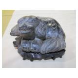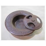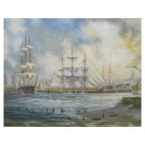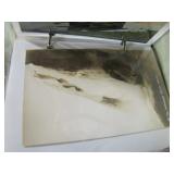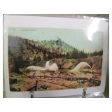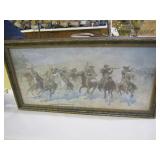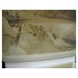 Chief Pontiac framed Dealership print by Jerry Farnsworth presented to Naumes Motors Mt. Pleasant MI; Bronze Siberian Grizzly Bear Inkwell by Russian sculpture Nikolia Lieberich casted by the bronze manufacturer Woerffel circa 1880; Beryl (Var. Emerald) in Quartz Sterling Southwest bracelet with large Smokey Quartz Crystal; Early tin clockwork windup mechanical hand painted fish toy; Early tin rubber band operated mechanical fish spearing decoy;