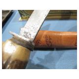 Imperial Germany Jawless Lion’s Head w/Ruby Eyes sword; Imperial Grosser Heavy Calvary Pallasch sword w/double fullers & 35.75" etched blade; WWI German Sawback bayonet; WWII Eickhorn German Nazi Army Officer’s Dagger w/hanger & tassel; 1913 WWI Patton Model Calvary Sabre; (2) 1876 British Enfield bayonets w/brass & leather scabbards; (2) German Third Reich porcelain skull & crossbones Achtung/Danger signs; vintage switchblade; Marbles Trailmaker