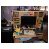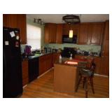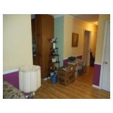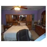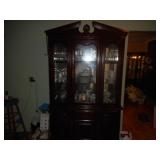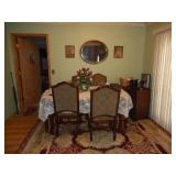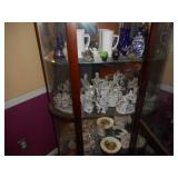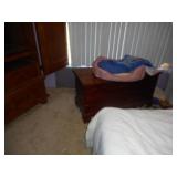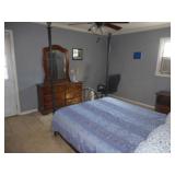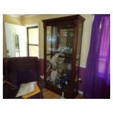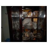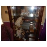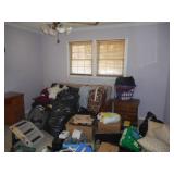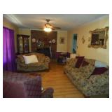 Iron bed, dresser, chest of drawers, office chair, flat screen TV, night stand, Shark vacuum, lamps, sofa & loveseat w/ ball & claw ft., wing back chair, 2- curio cabinets, corner what not shelf, dining table w/ 4 chairs, china hutch, server, 3 pc. bedroom set, cedar chest, odd chest, Homegear heater, dolls, mirrors, pictures, lots of smalls.