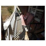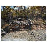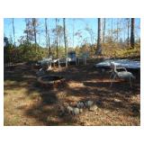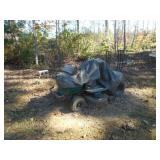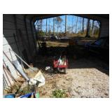 Red wagon, push fertilizer spreader, air compressor, toy John Deere Gator, battery charger, gas cans, drop cords, car ramps for shop, pump Ace hardware hand sprayer, 4 ft. x 6 ft. utility trailer, Craftsman riding mower, firewood stand, patio furniture, wheel barrows, trash cans , gas grill, step ladders, 10 x 14 utility bldg.., tiller, misc. hand & yard tools.